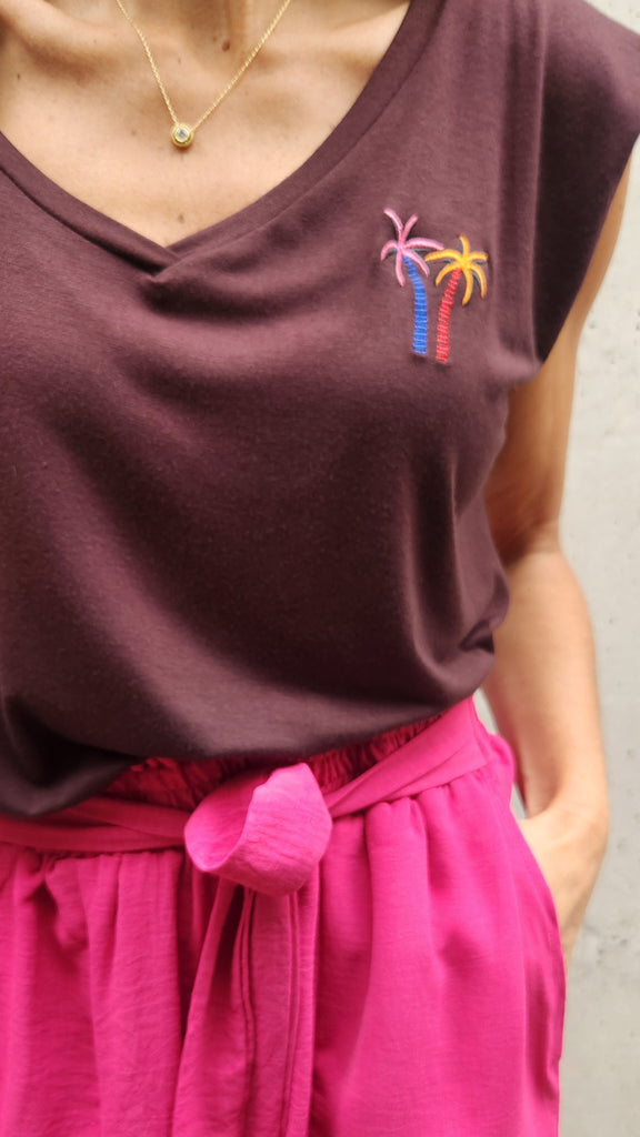 LOOK: Short LUA + Polera PALM + MINI BAG RAFIA + Pañuelo verde