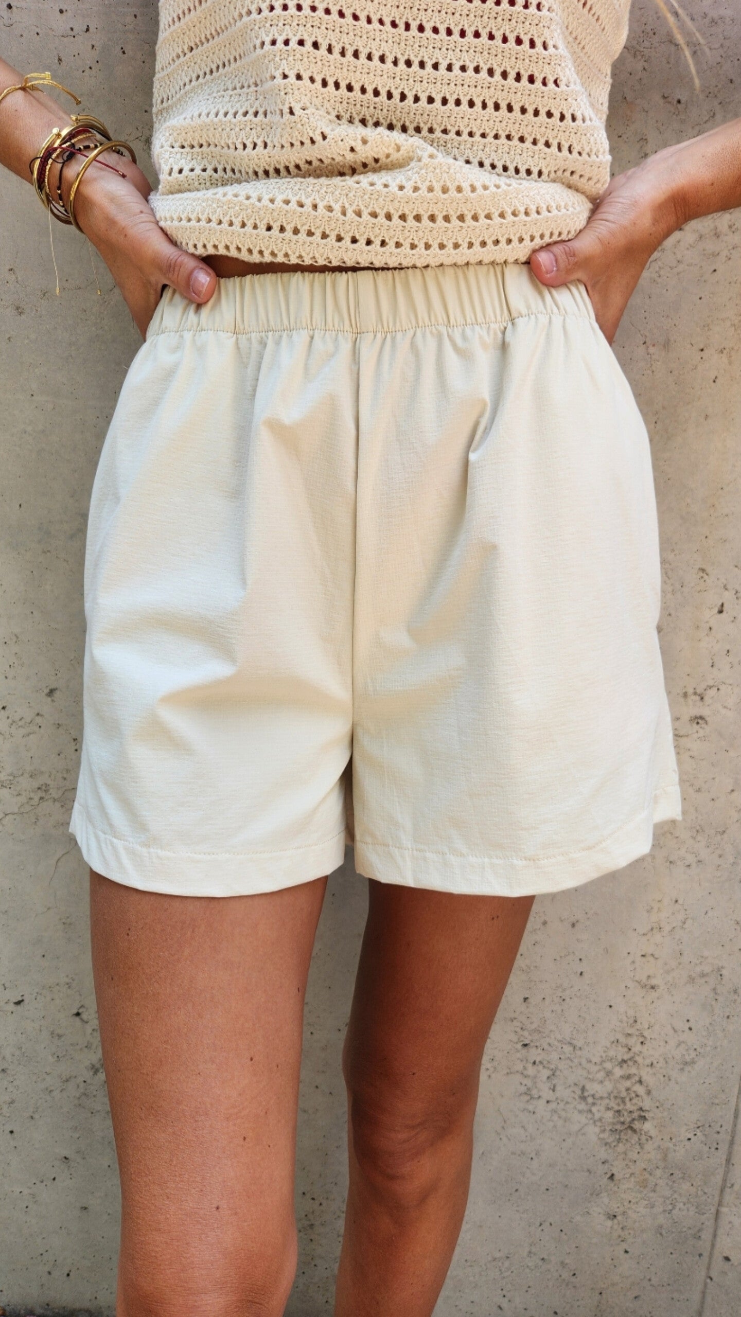 El short JULIA esta confeccionado en una tela impermeable tipo de cortaviento delgadita que lo hace muy resistente y duradera y que no se trasluzca nada!
