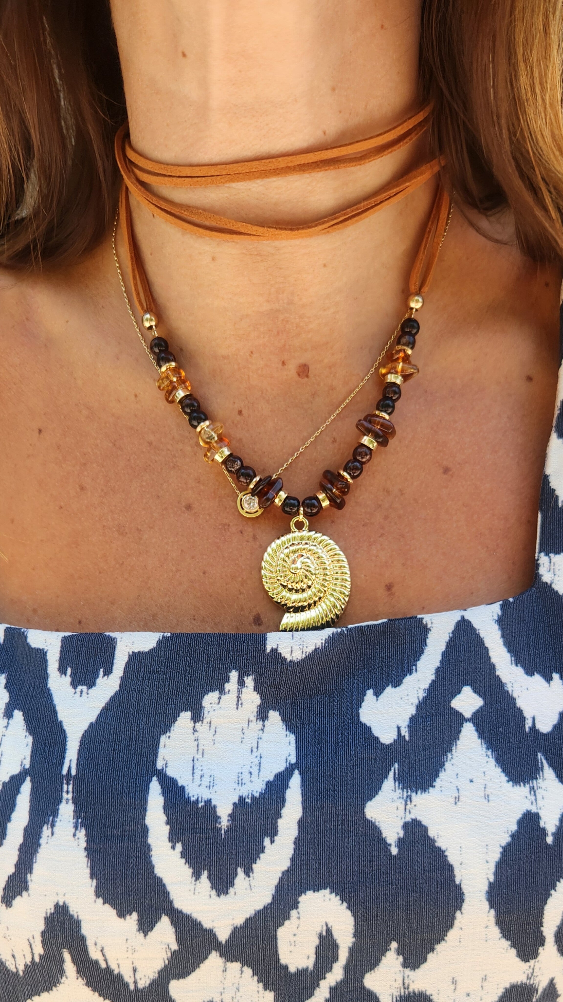 Collar con eslabones y tira de cuero. El collar es regulable para usarlo como collar o choker.
