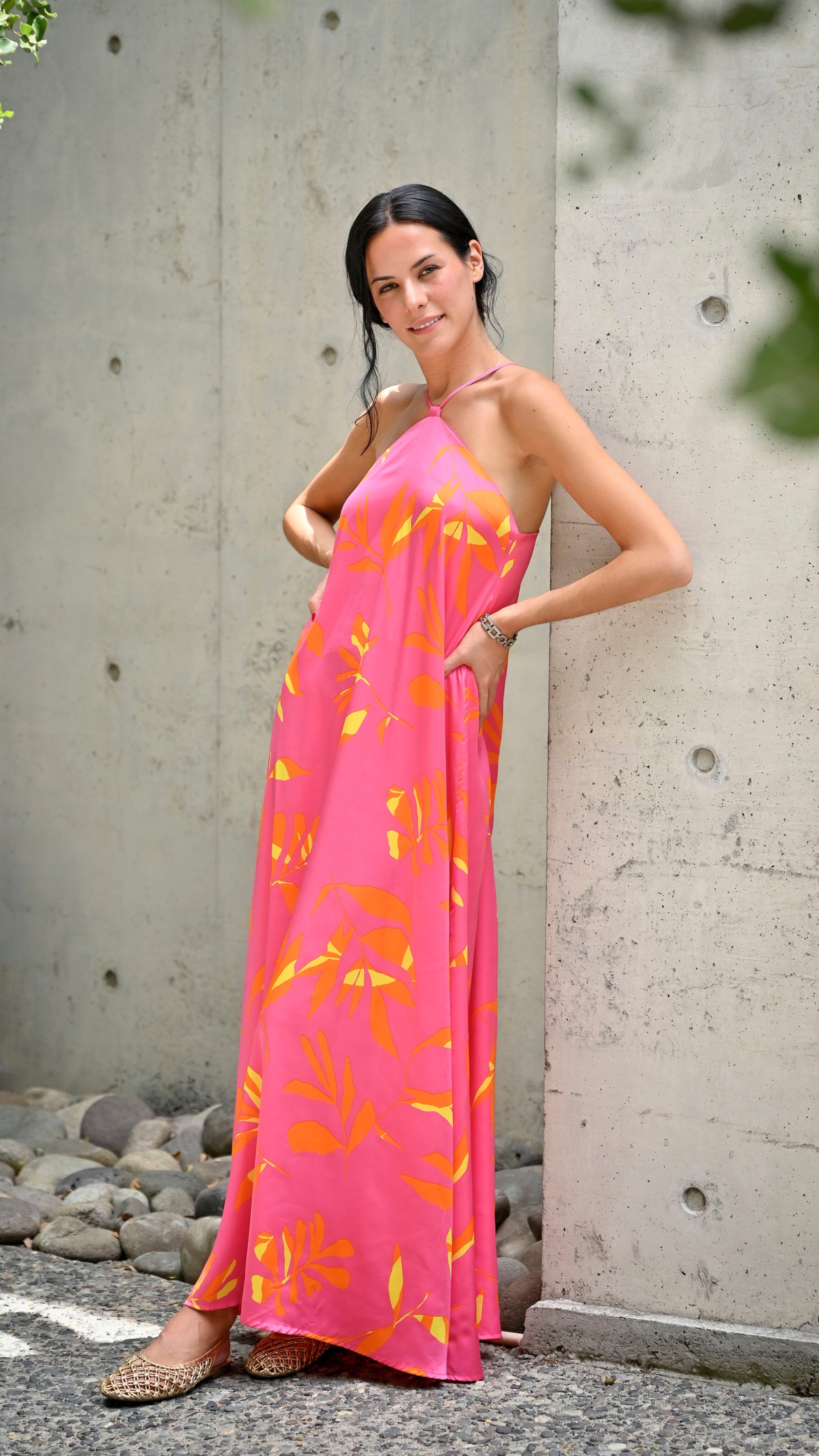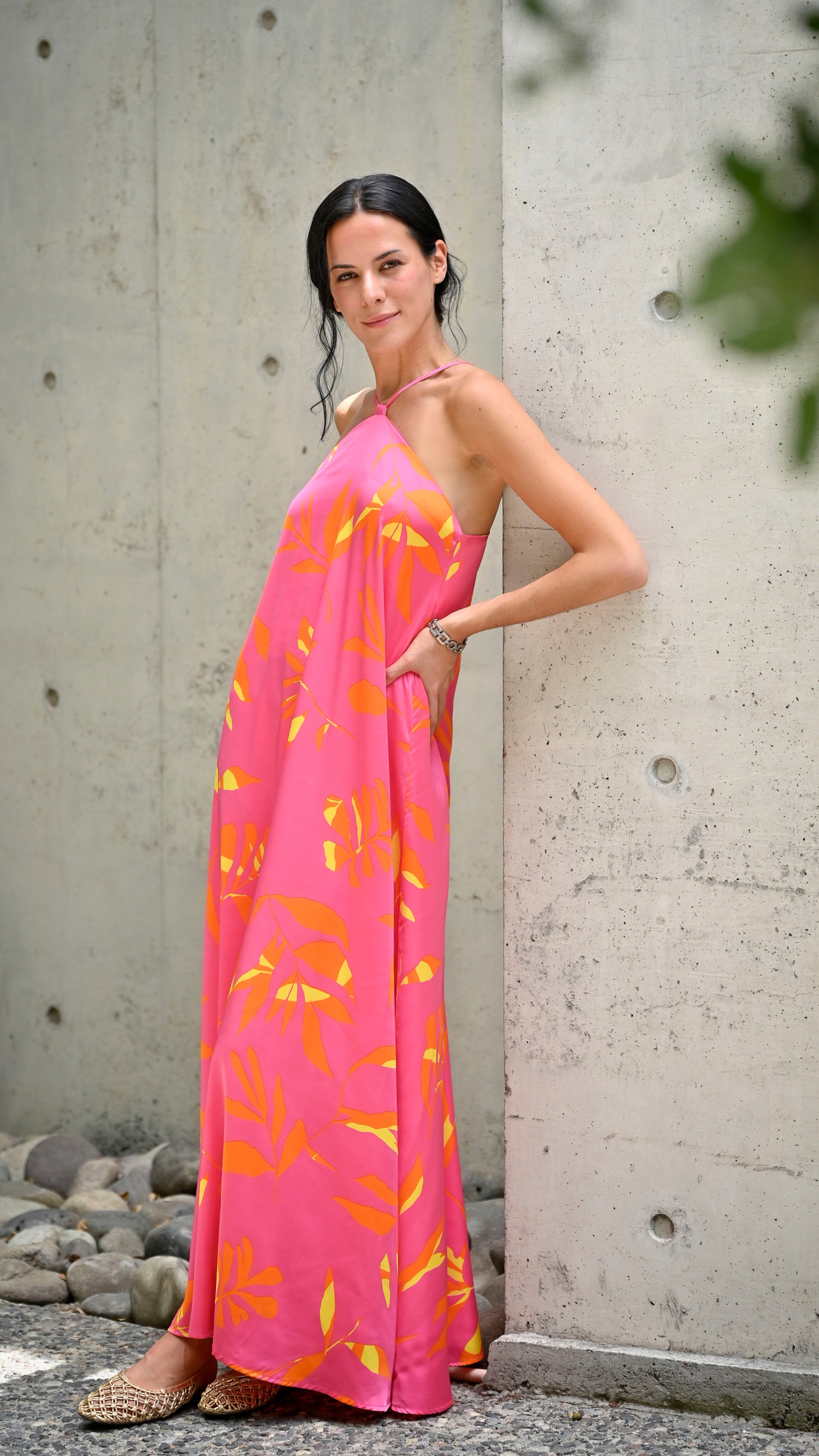 VESTIDO TRIANGULO FUCSIA FLORES - TU está en espera y se enviará tan pronto como vuelva a estar en stock